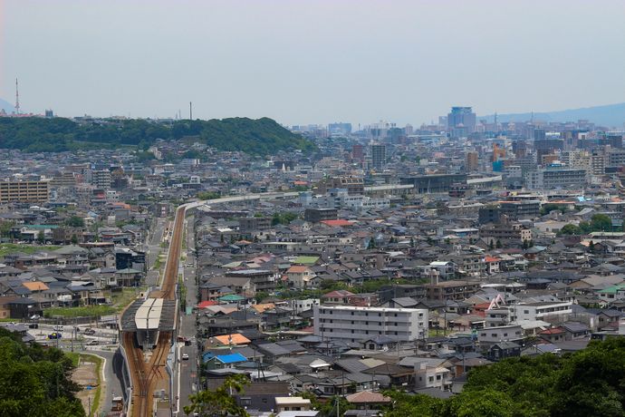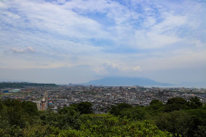 駐車場に上っていく最中に展望所のような場所があります。そこからの見晴らしは最高です!谷山の街の全景が望めます。