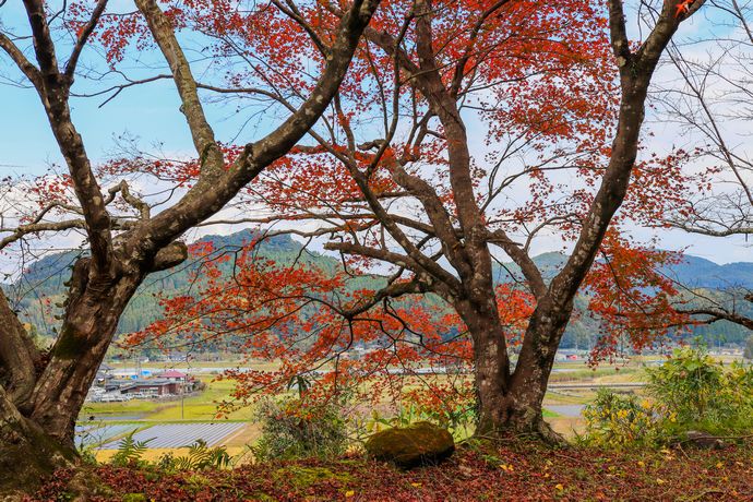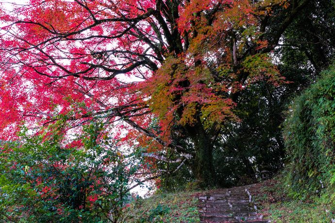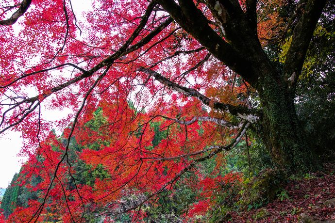 入来方面からあてのない紅葉探しをし、県道211号を蒲生支所方面に走っていると、以前、春にご紹介した芝桜で有名な「花の森 徳重」さんの近くに見事な紅葉を発見!!