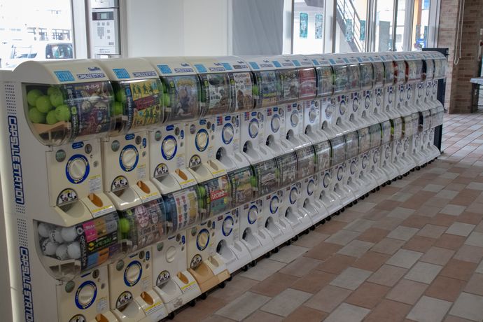 約 40 台のカプセル機をはじめ、歴代人気作から、最新作までここでしか購入することのできない数