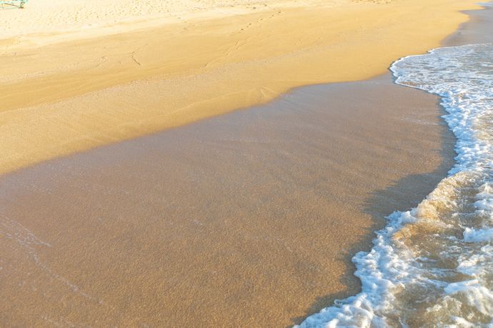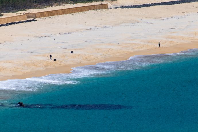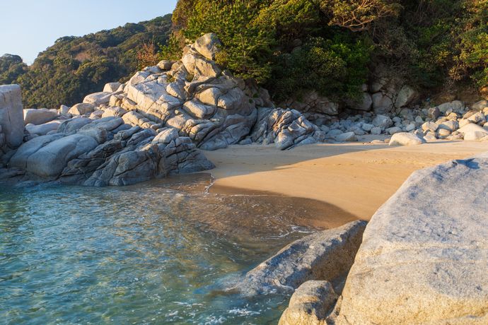 ゴミのない白い砂浜と青い海。釣り人やサーファーも訪れるそうですが、地域の方々の清掃や訪問者のマナーもあるのでしょうか。人工的なゴミがほとんどありません。