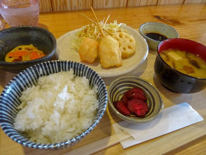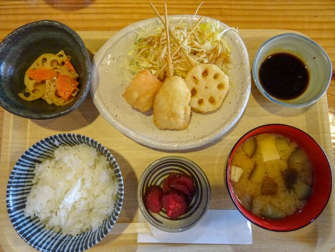 ・串カツ定食(串かつ五本、小鉢、味噌汁)