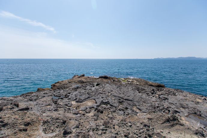 目の前の海は気持ちがいいです。それにしてもこの岩礁。明らかに溶岩が冷え固まったものだとわかるような感じで、そういった意味でも見る価値ありです(笑)