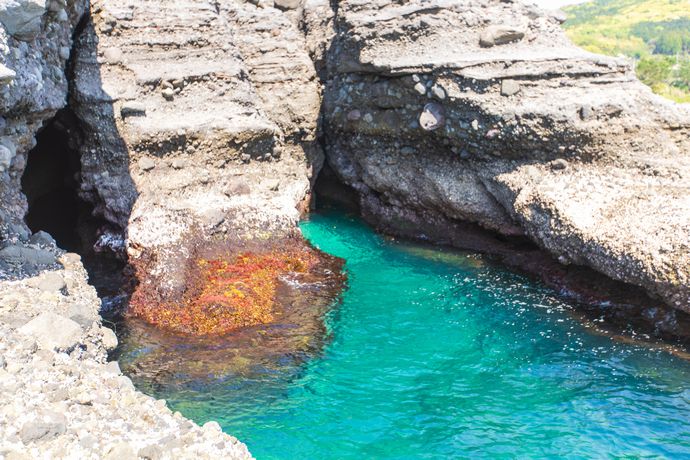 すぐそばには波で浸食された甌穴があったのですが、なんともそこの水が綺麗でついつい写真を撮ってしまいました(*^-^*)
