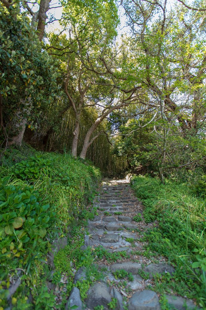 多少、コンクリートで補修した跡がありますが、なんとも風情がある石階段です。