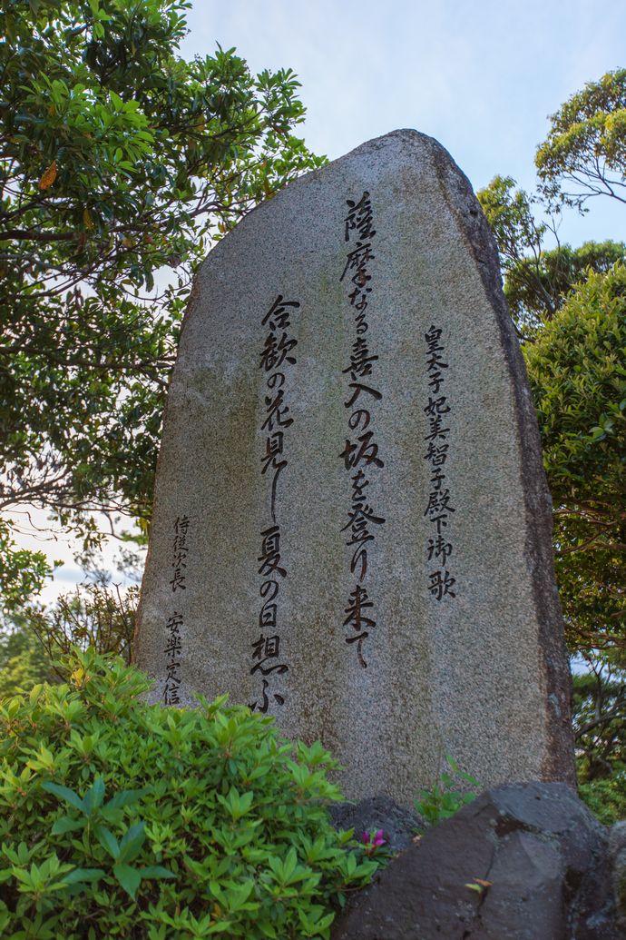 なぜこの場所かというと、美智子上皇后陛下が皇太子妃時代に上皇陛下と共に鹿児島へ訪れた際に、指宿スカイラインを通り休憩の際に見た景色をのちに御歌に詠まれたそうです。その場所がここ樋高展望台とのこと
