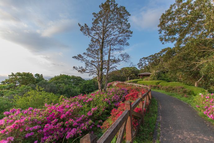 奥にある展望台に向かう道もツツジで彩られていました