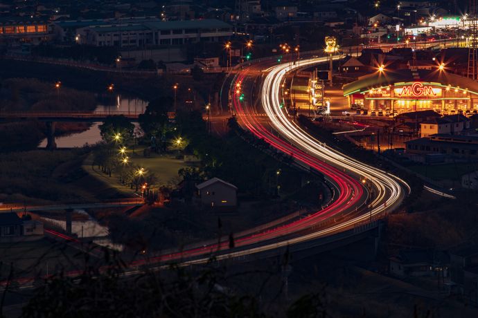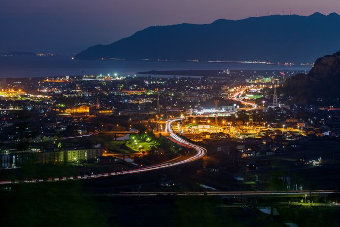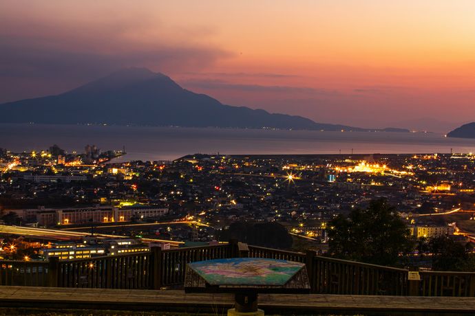 ・さえずりの森の展望台からの夕景や夜景の綺麗さがわかる
