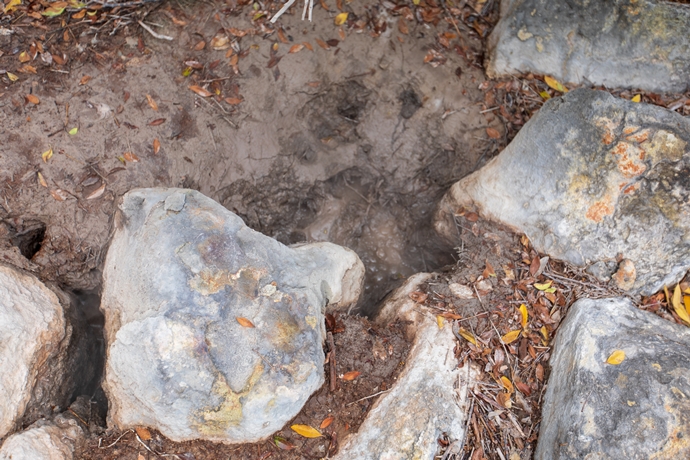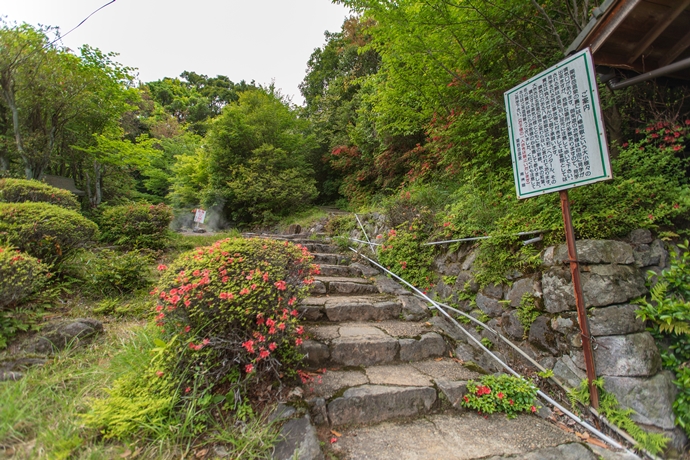 下の写真の看板裏手のには、祠があり神様が祀られていますのでお参りしてから奥に進みましょう。