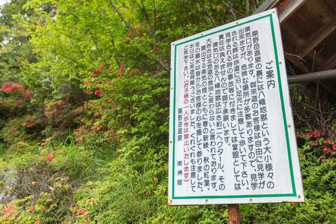 お子様連れは特に注意とのこと!これ、行ってわかりましたが、足元とかに高温の温泉や蒸気が噴出している場所もあるので、本当に注意です!