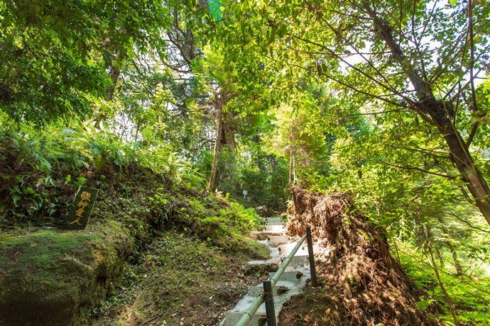そしてこの天神様の脇に御神木への階段が・・コンクリートで固めたり、手すりを付けたりと。バリアフリー参道といい、宮司さんたちのご配慮が感じられます。