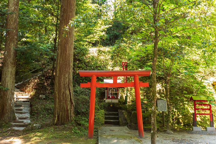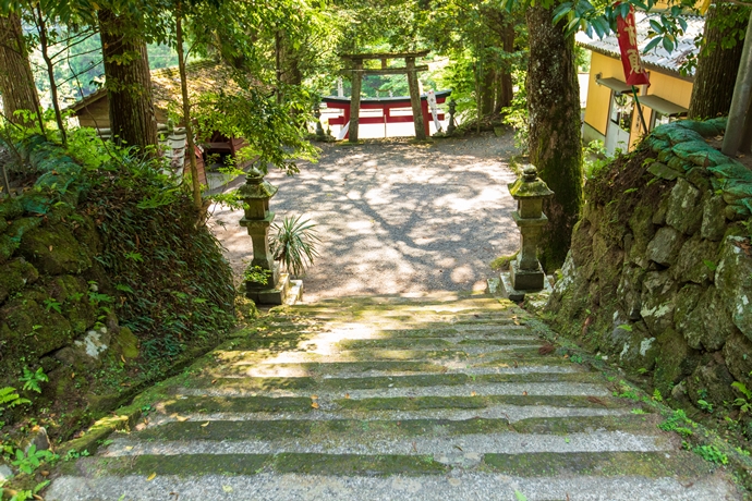 階段を上ったところにあり鳥居。ここから眺める境内と社殿の雰囲気がとても良いです。
