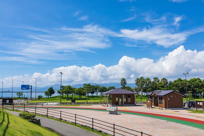 普段は海辺の公園として、市民の憩いの場になっていますが、令和元年8/27には浮桟橋も完成し、高速船や遊覧船へのアクセスが整備され、今後の計画では大型クルーズ船が同時に二隻停泊できるようにするという話もあることから、今後ますます国際港としての活用が増えてきそうな場所です。