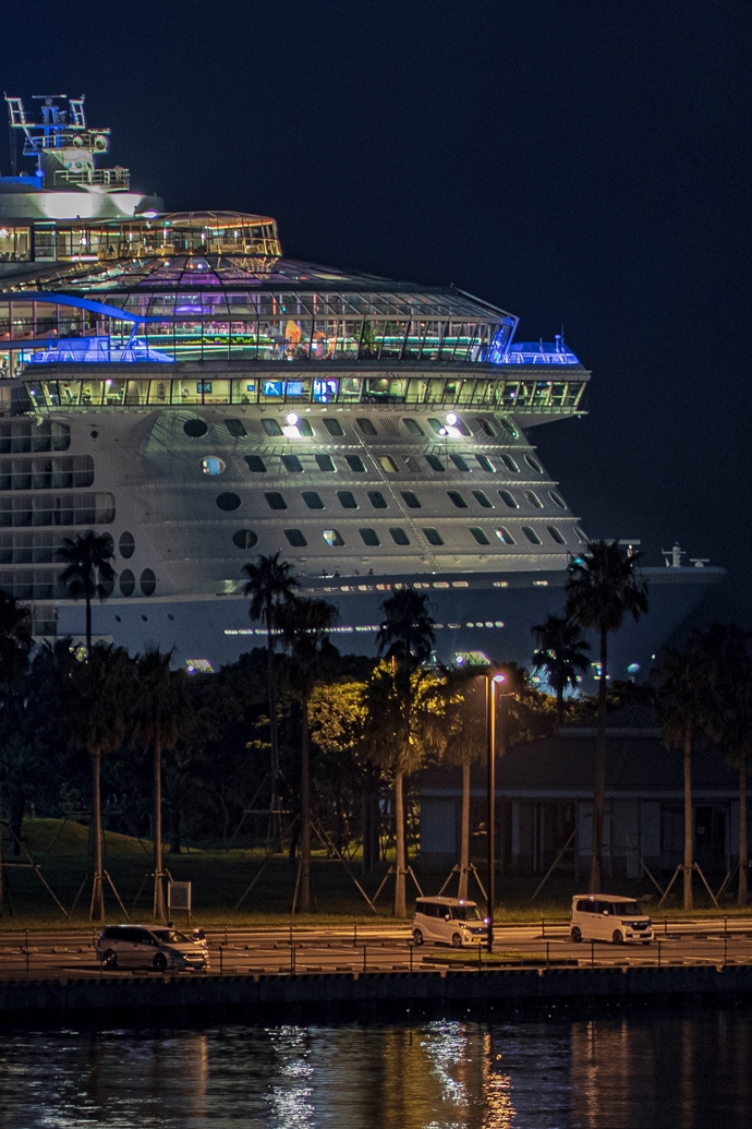 日を改めて別日の夜に撮影。海に浮かぶ豪華ホテルといった感じ