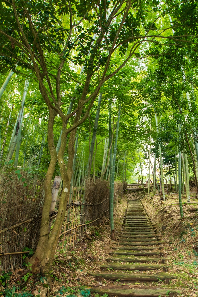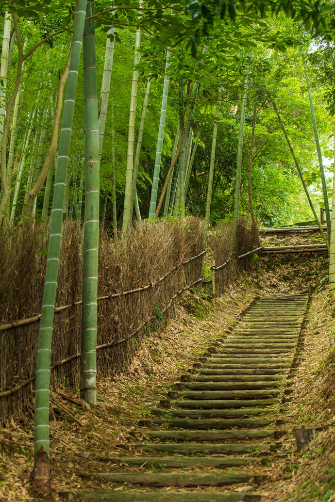 下まで来ました。竹林の階段。風情があります。再び登っていきます。
