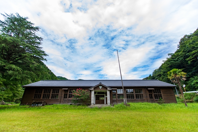 明治期、布計金山の採鉱が開始され、それに伴い布計地区に開校された小学校。1899(明治32)年から1979(昭和54)年まで、この地区の学び舎として地域に親しまれてきました。廃校後は、地域のイベントや映画のロケなどに木造校舎が使われていましたが、2010年老朽化を理由に保存工事が行われ、現在に至ります。