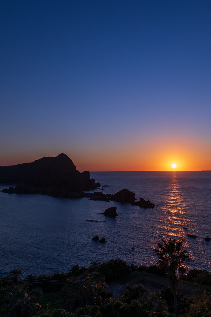 冬のこの時期は、空気が澄んでいて星空とか夜景とか、とにかく暗い中での撮影が楽しい時期なのですが、今回は南九州市坊津町秋目で、夕日→マジックアワー→ブルーアワーという景色の変化を楽しんできました(*^-^*)