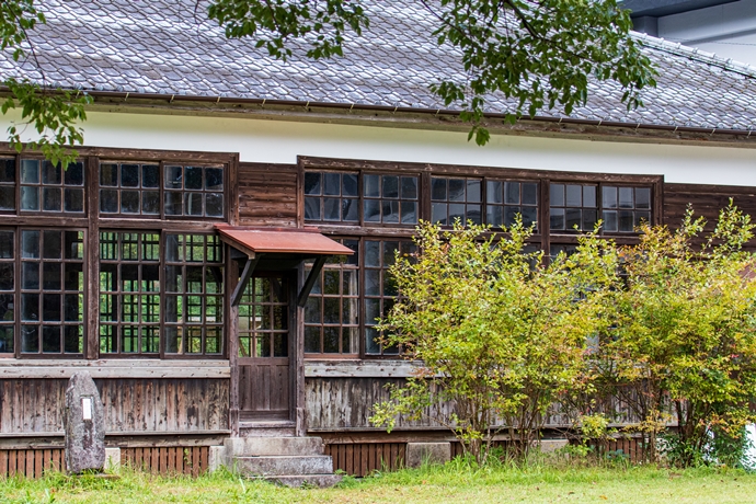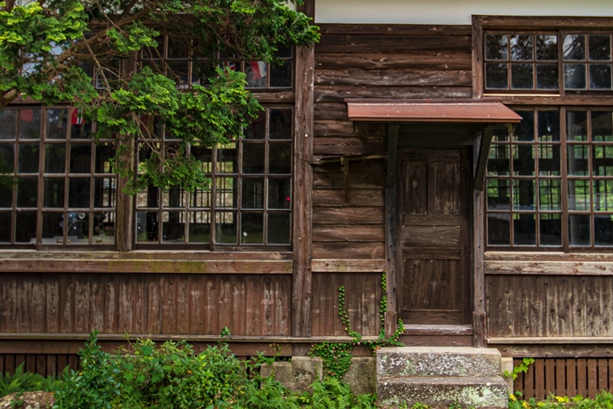 木造校舎の入口。かつてはここを勢いよく子供たちが出入りしていたのだ。。