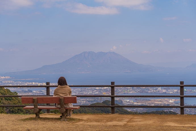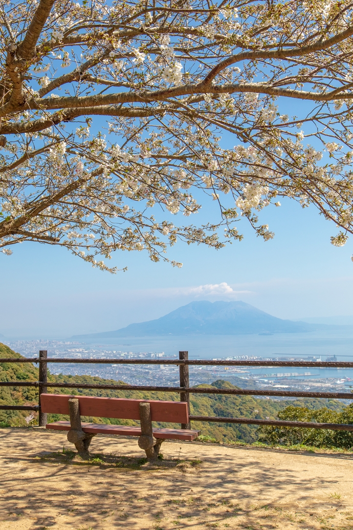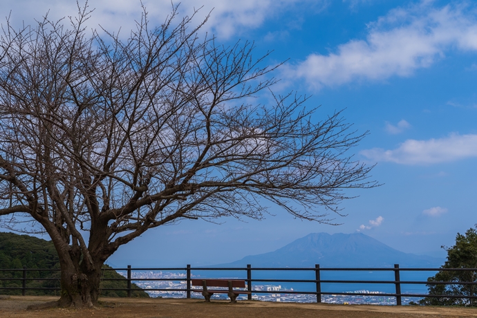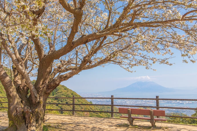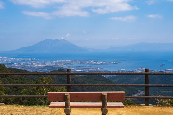 奥の方にあるベンチもいい味を出しています、桜島や鹿児島の街並みも素晴らしいです
