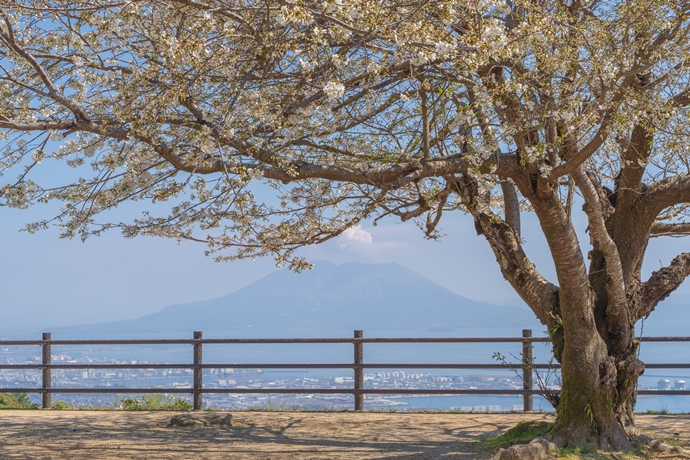 春の指宿スカイラインは須々原展望台にある桜の景色が素晴らしかった