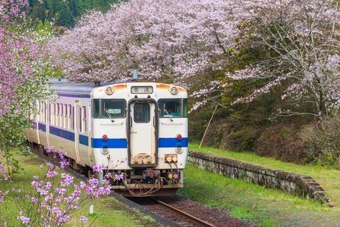 今回は霧島市隼人町のJR嘉例川駅の春の風景です。
