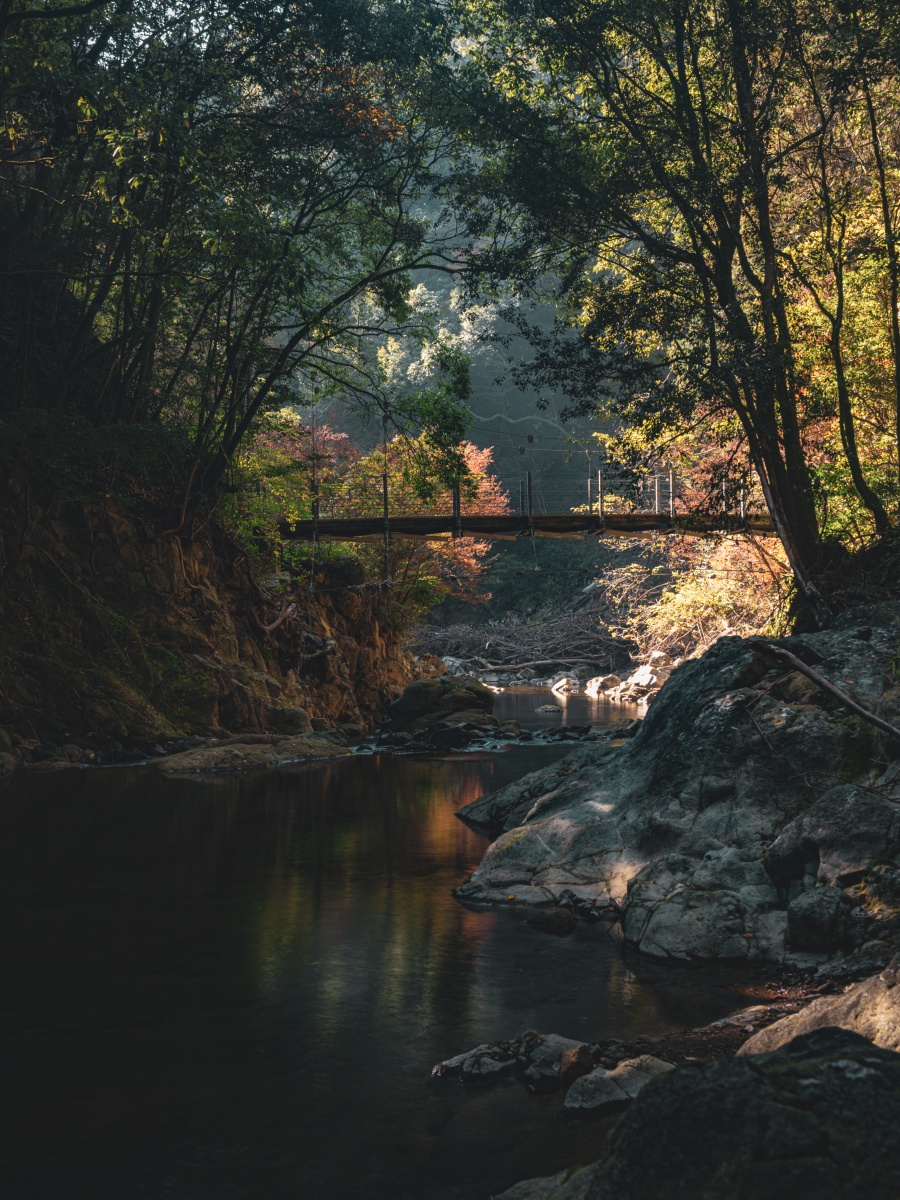 ちなみにこの橋を少し下ると川沿いに降りることができ、ここにも小さなつり橋があります
