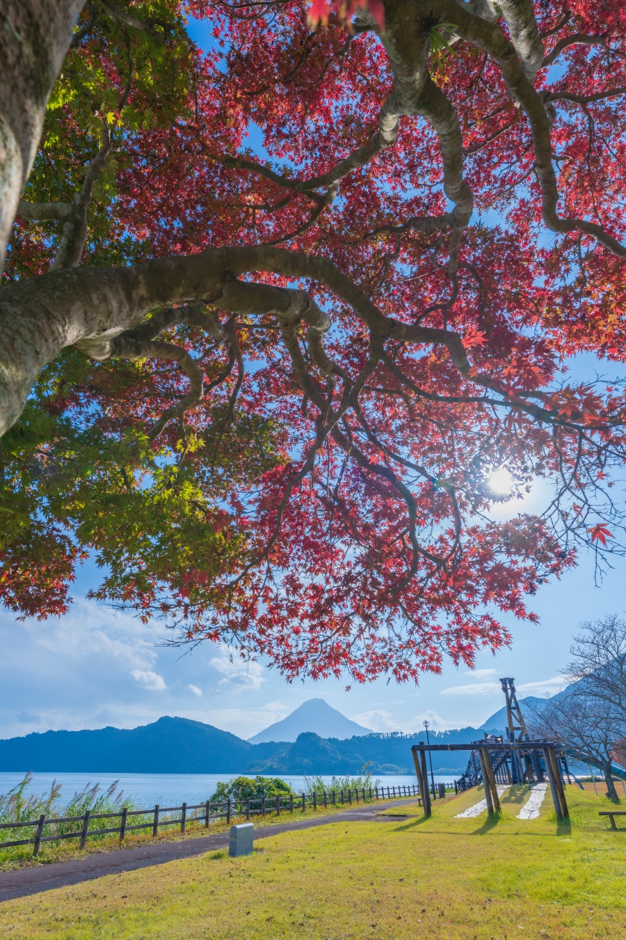 ちなみに池田湖でも紅葉と開聞岳は見れます